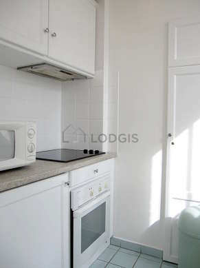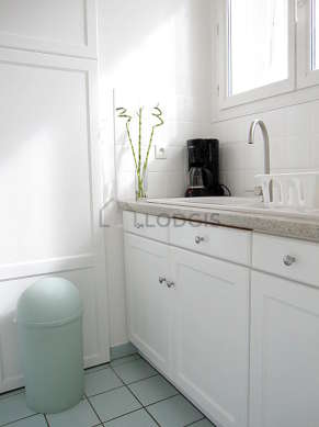 This apartment consists of a charming living room with wooden floor and its double-glazed windows and view on courtyard. This quiet living room is furnished and equipped for a comfortable stay: tv, linen, quilt, 2 armchair(s), dining table, coffee table, wardrobe, shelves, storage space, cupboard, 2 chair(s), stool1 sofabed(s) of 160cm, 1 bed(s) of 160cm.