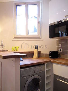 This apartment consists of a charming living room with wooden floor and its double-glazed windows. This very quiet living room is furnished and equipped for a comfortable stay: tv, linen, quilt, coffee table, wardrobe, cupboard1 sofabed(s) of 140cm.