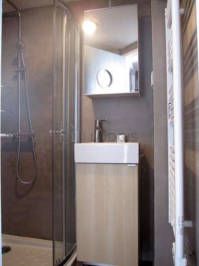 This apartment consists of a living room with wooden floor and its double-glazed windows and view on courtyard. This very quiet living room is furnished and equipped for a comfortable stay: tv, linen, quilt, sofa, desk, shelves, fireplace, 1 chair(s)1 bed(s) of 140cm.