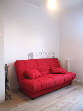 This apartment consists of a pleasant living room with wooden floor and its double-glazed windows and view on road. This living room is furnished and equipped for a comfortable stay: tv, linen, quilt, wardrobe, cupboard, 2 chair(s)1 sofabed(s) of 130cm.