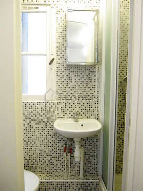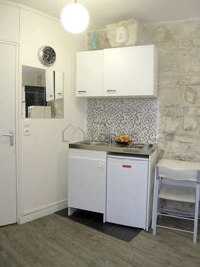 Living roomThis apartment consists of a attractive living room with wooden floor and its windows and view on courtyard. This very quiet living room is furnished and equipped for a comfortable stay: tv, linen, quilt, dining table, wardrobe, shelves, cupboard, exposed bricks, 2 chair(s), bedside table1 sofabed(s) of 160cm.