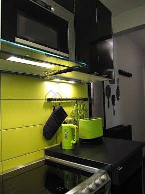 This apartment consists of beautiful kitchen with wooden floor and all the necessary equipment for your daily life: hob, refrigerator, oven, combined microwave oven, freezer, extractor hood, toaster, kettle, coffee-maker, cupboard, crockery.
