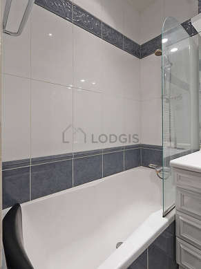 This apartment is equipped with a pleasant bathroom. This bathroom is furnished with all the equipment you need for a comfortable stay: bath towels, cupboard, bath tub, towel drying radiator. The toilets are separated from the bathroom and located in an independant room.