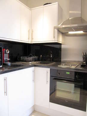 This apartment consists of beautiful kitchen with tile floor and all the necessary equipment for your daily life: hob, refrigerator, oven, microwave oven, freezer, extractor hood, toaster, kettle, coffee-maker, crockery.