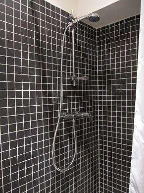 This apartment consists of a pleasant living room with concrete floor and its double-glazed windows and view on courtyard. This quiet living room is furnished and equipped for a comfortable stay: linen, quilt, dining table, coffee table, wardrobe, cupboard, 1 chair(s), stool1 sofabed(s) of 140cm.