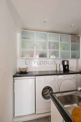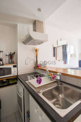 This apartment consists of a living room with wooden floor and its double-glazed windows and view on road. This quiet living room is furnished and equipped for a comfortable stay: tv, linen, quilt, dining table, coffee table, desk, wardrobe, shelves, storage space, cupboard1 bed(s) of 90cm, 1 sofabed(s) of 140cm.