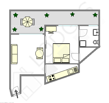 1 bedroom furnished apartment with terrace, elevator and concierge Paris 9°