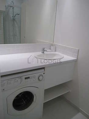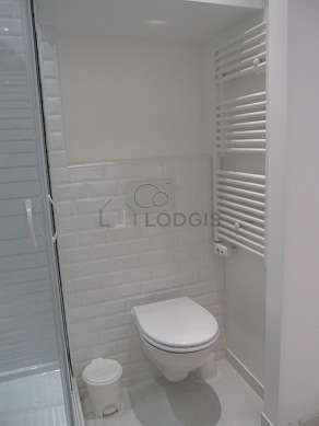 This apartment consists of a living room with wooden floor and its windows and view on road. This living room is furnished and equipped for a comfortable stay: tv, sofa, 2 armchair(s), wardrobe.