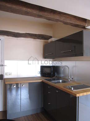 This apartment consists of beautiful kitchen with wooden floor and all the necessary equipment for your daily life: hob, refrigerator, combined microwave oven, toaster, kettle, cupboard, crockery.
