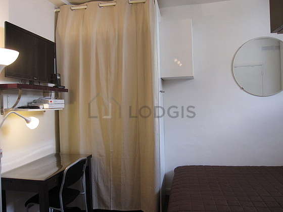 This apartment consists of a pleasant living room with wooden floor and its double-glazed windows. This quiet living room is furnished and equipped for a comfortable stay: tv, linen, quilt, desk, wardrobe, shelves, 2 chair(s)1 bed(s) of 140cm.