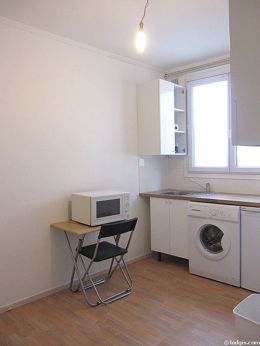 This apartment consists of a living room with linoleum floor and its double-glazed windows and view on courtyard. This quiet living room is furnished and equipped for a comfortable stay: tv, linen, quilt, desk, closet, storage space, 1 chair(s)1 sofabed(s) of 140cm.