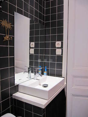 This apartment consists of a charming living room with wooden floor and its double-glazed windows and view on courtyard. This very quiet living room is furnished and equipped for a comfortable stay: tv, sofa, coffee table, 1 chair(s).