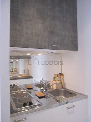 This apartment consists of beautiful kitchen with a slate floor and all the necessary equipment for your daily life: hob, refrigerator, combined microwave oven, freezer, extractor hood, kettle, coffee-maker, cupboard, crockery.