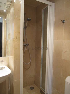 This apartment consists of a living room with tile floor and its double-glazed windows and view on road. This living room is furnished and equipped for a comfortable stay: linen, quilt, dining table, desk, shelves, cupboard, 2 chair(s)1 mattress of 80cm.