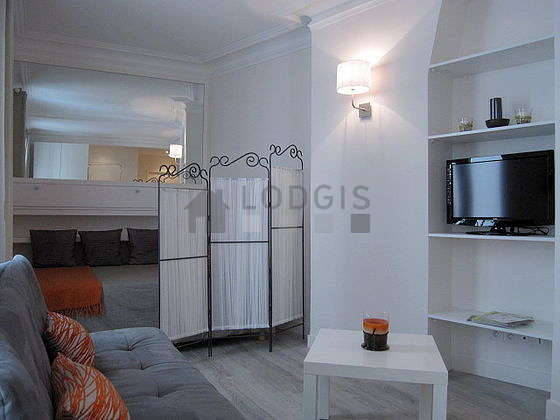This apartment consists of a attractive living room with wooden floor and its double-glazed windows and view on courtyard. This very quiet living room is furnished and equipped for a comfortable stay: tv, linen, quilt, coffee table, shelves, closet, stool, bar1 sofabed(s) of 140cm, 1 bed(s) of 140cm.