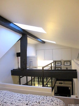 Thanks to its lovely height-under-ceiling, amezzanine was set up in this apartment , thus offering you an extra room supplementary equipped with linen, quilt, desk.