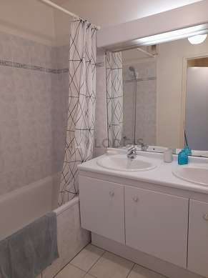 This apartment is equipped with a pleasant bathroom. This bathroom is furnished with all the equipment you need for a comfortable stay: bath towels, cupboard, bath tub. The toilets are separated from the bathroom and located in an independant room.