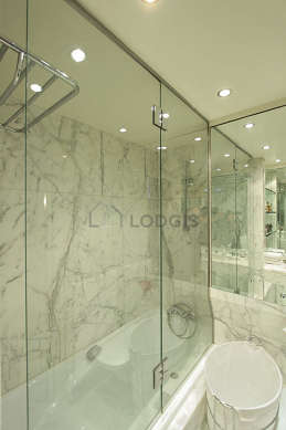 This duplex is equipped with a great bathroom. This bathroom is furnished with all the equipment you need for a comfortable stay: bath towels, shelves, cupboard, bath tub, towel drying radiator. The toilets are separated from the bathroom and located in an independant room.