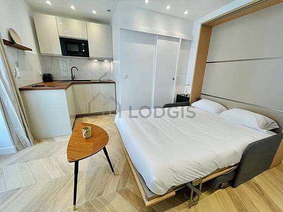 Living roomThis apartment consists of a attractive living room with wooden floor and its double-glazed windows and view on road. This very quiet living room is furnished and equipped for a comfortable stay: tv, linen, quilt, sofa, coffee table, cupboard, 2 chair(s), bedside table1 sofabed(s) of 140cm.