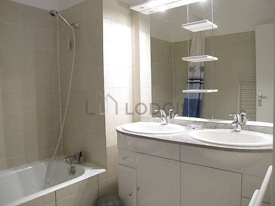 This apartment is equipped with a bathroom. This bathroom is furnished with all the equipment you need for a comfortable stay: bath towels, shelves, cupboard, bath tub. The toilets are separated from the bathroom and located in an independant room.