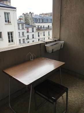 This apartment consists of a pleasant living room with wooden floor and its double-glazed windows with balcony and view on road. This very quiet living room is furnished and equipped for a comfortable stay: tv, sofa, 1 armchair(s), dining table, wardrobe, bookcase, sideboard, cupboard, 4 chair(s).