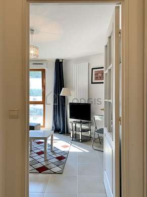 This apartment consists of a fabulous living room with wooden floor and its double-glazed windows and view on road. This quiet living room is furnished and equipped for a comfortable stay: tv, wardrobe, cupboard, 2 chair(s)1 sofabed(s) of 140cm.