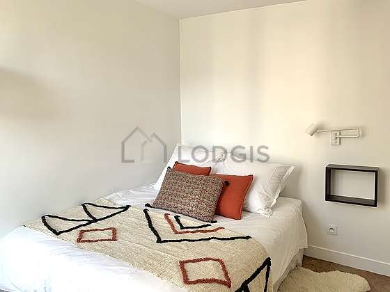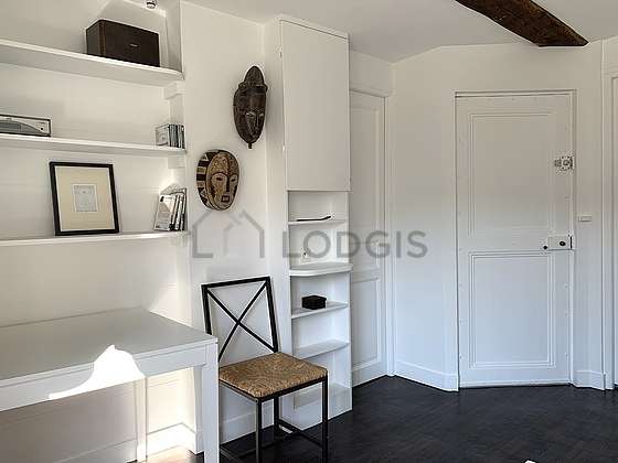 This apartment consists of a beautiful living room with linoleum floor and its double-glazed windows and view on courtyard. This very quiet living room is furnished and equipped for a comfortable stay: home cinema, tv, sofa, dining table, coffee table, shelves, 2 chair(s).
