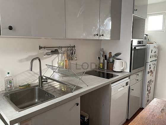 This apartment consists of kitchen with tile floor and all the essential equipment for your daily life: hob, refrigerator, freezer, combined microwave oven, coffee-maker, shelves, cupboard, crockery, bar.