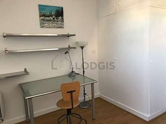 This apartment consists of a pleasant living room with wooden floor and its double-glazed windows and view on courtyard. This very quiet living room is furnished and equipped for a comfortable stay: tv, linen, quilt, dining table, desk, wardrobe, shelves, cupboard, 1 chair(s), stool1 bed(s) of 90cm.