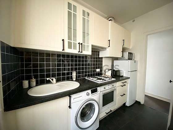 This apartment is equipped with a great bathroom and bright with windows. This bathroom is furnished with all the equipment you need for a comfortable stay: shelves, cupboard, separate shower, airer, sink, mirror, towel drying radiator. The toilets are separated from the bathroom and located in an independant room.