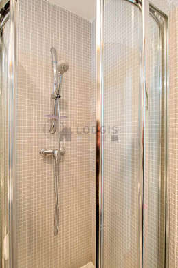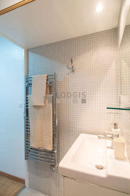 This apartment consists of a charming living room with wooden floor and its double-glazed windows and view on courtyard. This quiet living room is furnished and equipped for a comfortable stay: tv, linen, quilt, coffee table, wardrobe, shelves, cupboard1 sofabed(s) of 140cm.