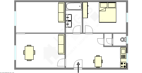 This apartment is equipped with a pleasant bathroom and bright. This bathroom is furnished with all the equipment you need for a comfortable stay: bath towels, cupboard, bath tub, hair-dryer, towel drying radiator. The toilets are separated from the bathroom and located in an independant room.