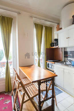 This apartment consists of a pleasant living room with wooden floor and its double-glazed windows and view on road. This quiet living room is furnished and equipped for a comfortable stay: dining table, wardrobe, shelves, cupboard, 3 chair(s), stool1 loft bed(s) of 140cm, 1 sofabed(s) of 140cm.