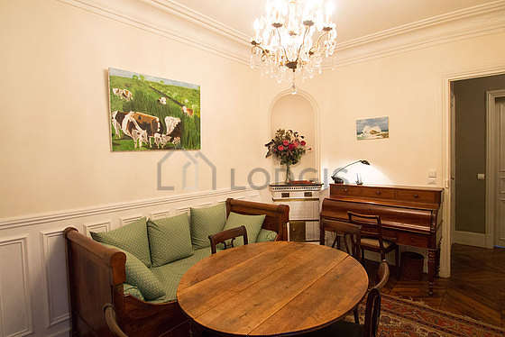 In order to share your meals in a convivial atmosphere during your stay parisian, this apartment offers a dining room thanks to its linen, quilt, dining table, closet, storage space.