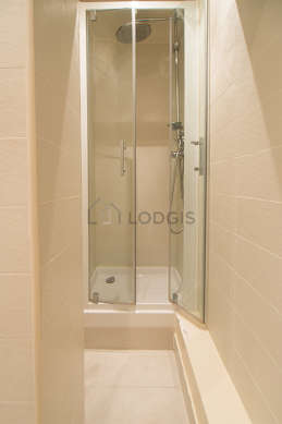 This apartment consists of a charming living room with wooden floor and its windows and view on road. This quiet living room is furnished and equipped for a comfortable stay: tv, dining table, coffee table, wardrobe, closet, cupboard, 4 chair(s)1 sofabed(s) of 140cm.
