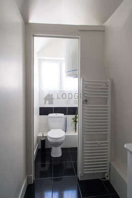 This apartment consists of a pleasant living room with wooden floor and its windows and view on courtyard. This very quiet living room is furnished and equipped for a comfortable stay: tv, linen, quilt, 1 armchair(s), dining table, coffee table, wardrobe, cupboard, 2 chair(s)1 sofabed(s) of 140cm.
