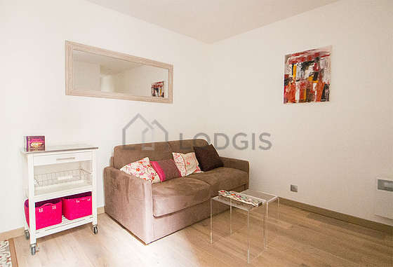 This apartment consists of a charming living room with wooden floor and its windows and view on courtyard. This quiet living room is furnished and equipped for a comfortable stay: tv, linen, quilt, coffee table, stool1 sofabed(s) of 140cm.
