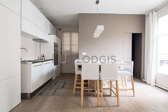 This apartment consists of beautiful kitchen with wooden floor and all the essential equipment for your daily life: hob, refrigerator, freezer, oven, combined microwave oven, extractor hood, cupboard, crockery, 8 chair(s), bar.