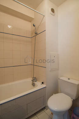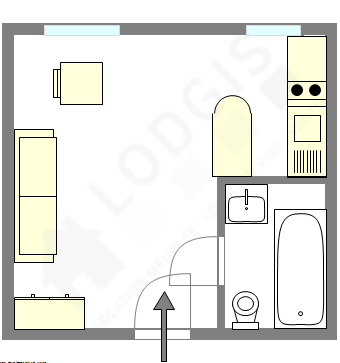 This apartment consists of a pleasant living room with a carpeting floor and its double-glazed windows and view on road. This quiet living room is furnished and equipped for a comfortable stay: tv, linen, quilt, dining table, wardrobe, shelves, cupboard, 2 chair(s)1 sofabed(s) of 140cm.