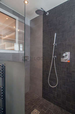 This duplex is equipped with a great bathroom and bright. This bathroom is furnished with all the equipment you need for a comfortable stay: bath towels, shelves, cupboard, separate shower, hair-dryer, towel drying radiator. The toilets are located in the bathroom.