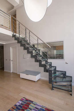 This duplex consists of a very beautiful bookcase equipped with tv, sofa, coffee table, shelves. This genuine living room will offer you the perfect atmosphere to fully relax.