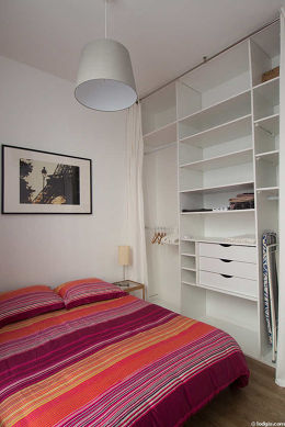 This apartment consists of a beautiful living room with wooden floor and its double-glazed windows and view on courtyard. This very quiet living room is furnished and equipped for a comfortable stay: tv, dining table, coffee table, bookcase, storage space, 2 chair(s)1 sofabed(s) of 140cm.