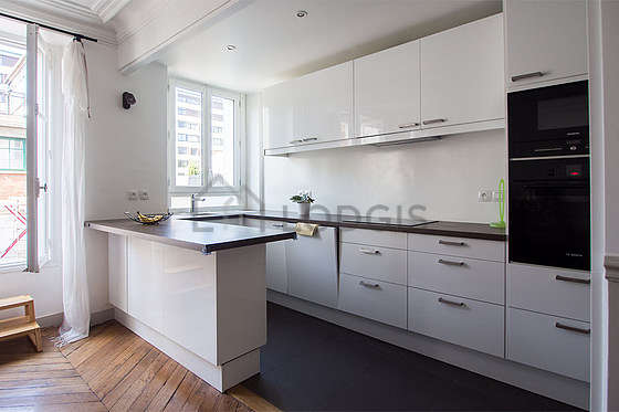 View on courtyard, the terrace facing due south-westoriented of this apartment will charm. This quiet and very bright outdoor space furnished with dining table, 4 chair(s) will enable you to fully enjoy your Parisian stay, especially in the sunny days.