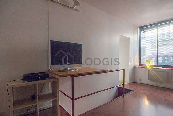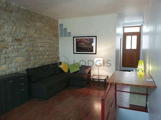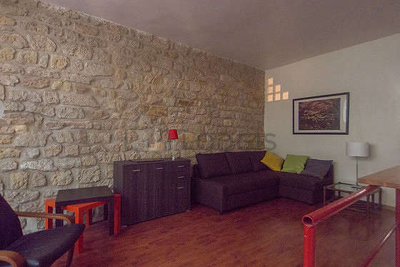 Living roomThis apartment consists of a living room with wooden floor and its double-glazed windows and view on road. This living room is furnished and equipped for a comfortable stay: tv, 1 armchair(s), coffee table, storage space1 sofabed(s) of 120cm.