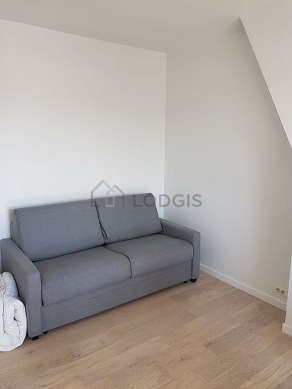 This apartment consists of a pleasant living room with wooden floor and its double-glazed windows and view on courtyard. This very quiet living room is furnished and equipped for a comfortable stay: tv, linen, quilt, dining table, shelves, cupboard, fireplace, 2 chair(s), stool1 sofabed(s) of 140cm.