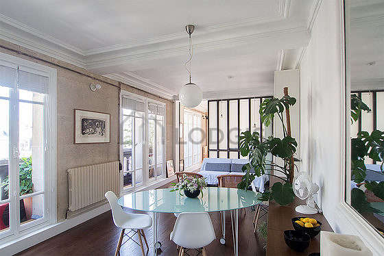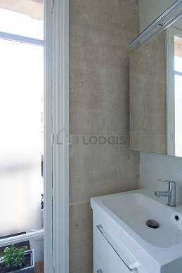 This apartment is equipped with a pleasant bathroom and bright with windows. This bathroom is furnished with all the equipment you need for a comfortable stay: bath towels, shelves, cupboard, separate shower, hair-dryer, towel drying radiator. The toilets are separated from the bathroom and located in an independant room.
