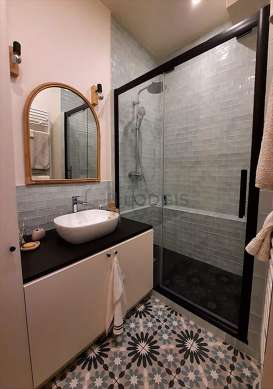 Living roomThis apartment consists of a charming living room with wooden floor and its double-glazed windows and view on courtyard. This quiet living room is furnished and equipped for a comfortable stay: tv, quilt, dining table, shelves, cupboard, 4 chair(s)1 sofabed(s) of 140cm, 1 sofabed(s) of 160cm.