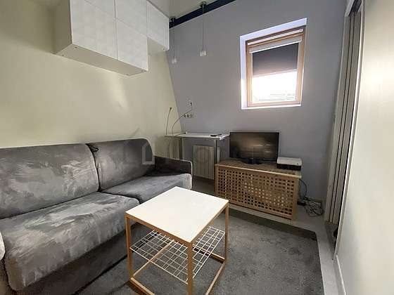 This apartment consists of a fabulous living room with wooden floor and its double-glazed windows and view on courtyard. This very quiet living room is furnished and equipped for a comfortable stay: tv, linen, quilt, coffee table, desk, wardrobe, cupboard, 1 chair(s)1 sofabed(s) of 140cm.