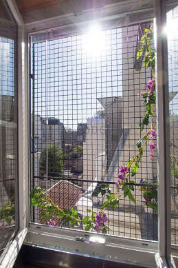 This apartment consists of a charming living room with wooden floor and its double-glazed windows and view on courtyard. This very quiet living room is furnished and equipped for a comfortable stay: tv, linen, quilt, dining table, shelves, cupboard, 1 chair(s)1 murphy bed(s) of 120cm.