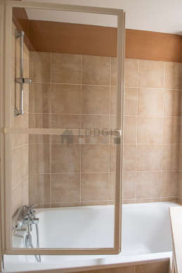 This apartment is equipped with a bathroom with windows. This bathroom is furnished with all the equipment you need for a comfortable stay: bath tub, hair-dryer, towel drying radiator. The toilets are separated from the bathroom and located in an independant room.